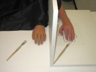 In patient studies, impairments of sense of body ownership have repeatedly been linked to right-hemispheric brain damage.In the current study a team of IKN scientists from the Neuro- and Biopsychology labs investigated lateralisation for sense of body ownership in healthy adults.To this end the rubber hand illusion was elicited on both hands of left- and right-handed participants.The vividness of the illusion was measured by subjective self-reports as well as by skin conductance responses to watching the rubber hand being harmed.Handedness did not affect the vividness of the illusion, but a stronger skin conductance response was observed, when the illusion was elicited on the left hand.These findings suggest a right-hemispheric dominance for sense of body ownership in healthy adults.
